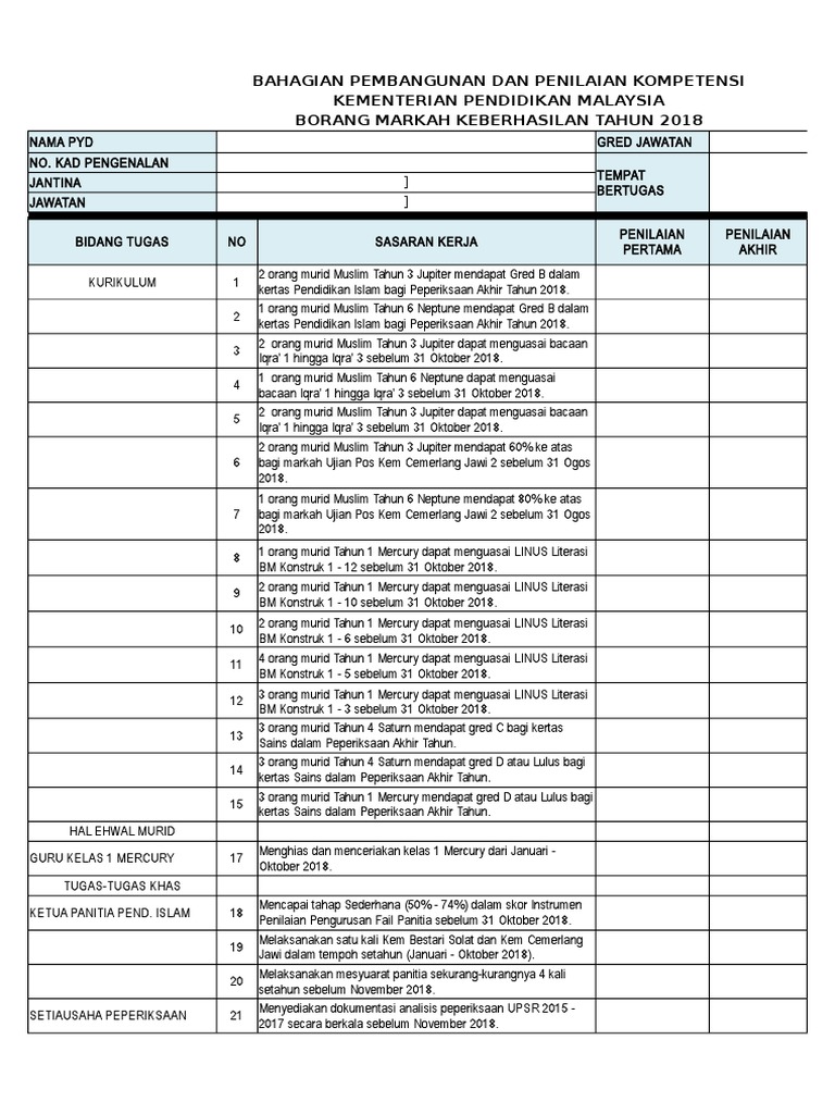 Contoh Borang Keberhasilan Guru Akademik / Bahagian pembangunan dan penilaian kementerian pendidikan mala.